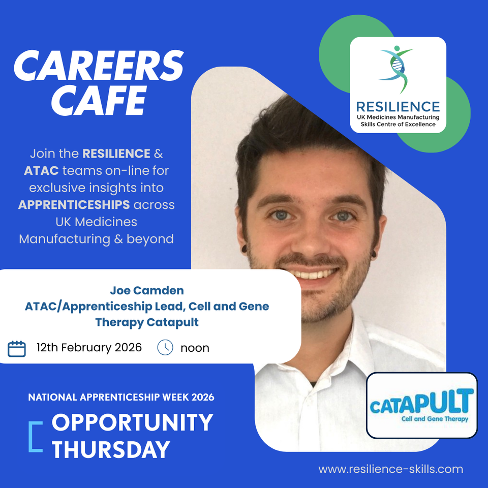 Join the RESILIENCE team and guest speakers online for exclusive insights into exciting careers across UK Medicines Manufacturing & beyond.